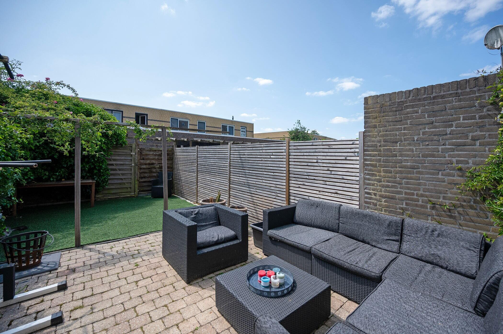 De achtertuin is een groot pluspunt van deze woning: onderhoudsvriendelijk ingericht met een combinatie van tegels en kunstgras. Door de diepte van 8.5 meter en de beschutte ligging kun je hier de hele dag door genieten van zon én privacy. Er is ruimte voor een fijn terras, speelplek of een buitenkeuken.