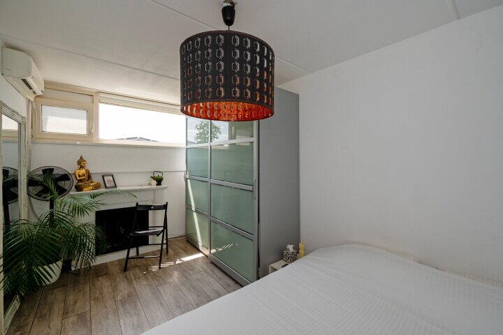 Op zolder vind je de derde slaapkamer, ideaal als hoofdslaapkamer, werkplek of hobbyruimte. Deze slaapkamer is voorzien van een airco. De badkamer is functioneel ingericht met een douche en wastafel. Tevens is hier een aparte wasruimte met aansluiting voor wasmachine en droger, en bevindt zich hier ook de cv-ketel.