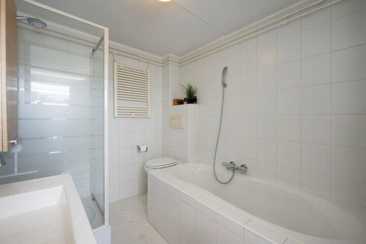 - Douche, inloopdouche, ligbad, toilet, wastafel, en wastafelmeubel